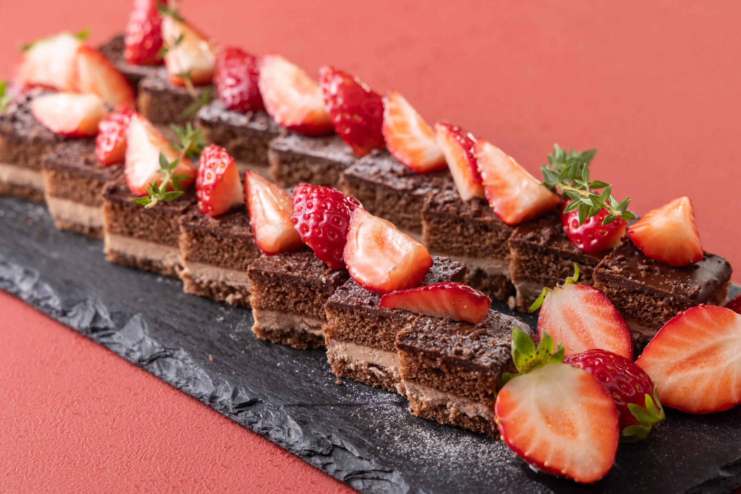 カカオと苺の魅力を引き立てた多彩なスイーツが並びます。
