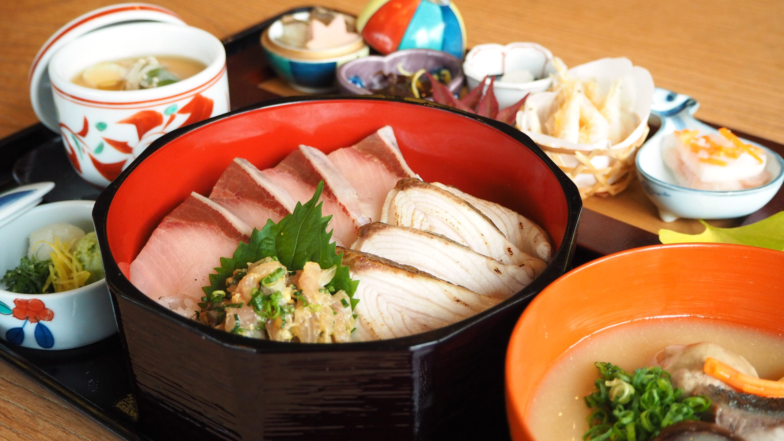 刺身・炙り・なめろうの3種類が味わえるぶり丼御膳!